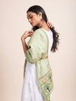 African Motif - Madhubani Hemp Stole - Pistachio Green
